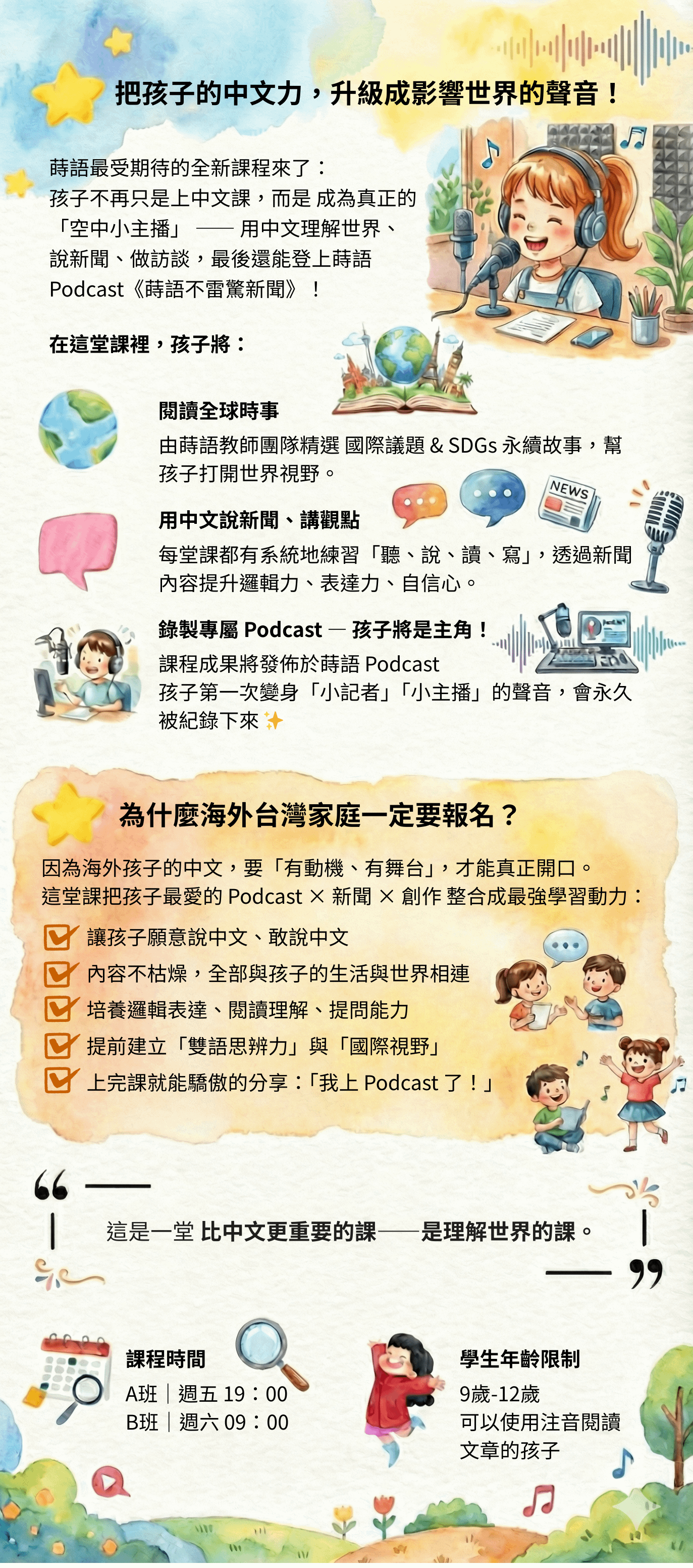 連結世界新聞的中文課程,蒔語 Podcast 主播募集中!